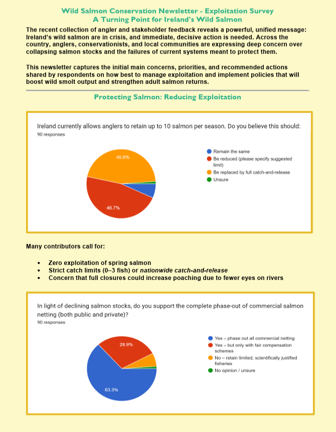 Your input has been invaluable, and this summary reflects the collective voice of those committed to protecting Ireland’s wild salmon. We encourage you to read it, share it, and continue engaging as we move forward with stronger advocacy and evidence-based policy proposals.